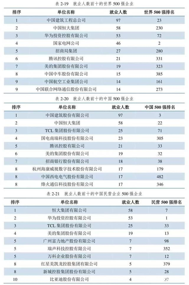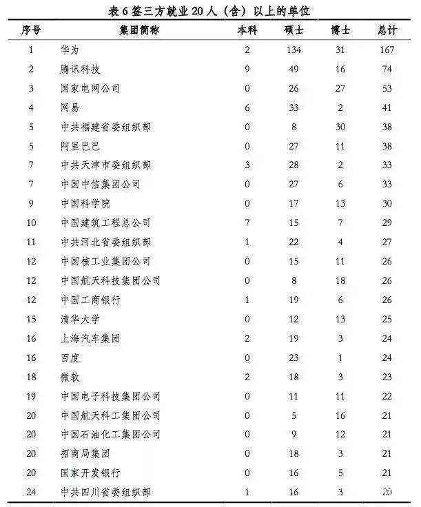排在第一的是中建這個央企,其次是恒大。此外,萬科、富力等房地產公司也榜上有名,這可能和華科大的土木工程專業較強有一定關係。