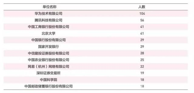 北大學子和清華學子一樣,最愛央企和大科技公司。排名前12個單位中,有6家央企,3家科技公司,而中科院、北京大學、深交所也是級別相當高的事業單位。