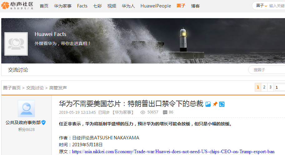 日經新聞認為,任正非一保最近幾個月的強硬態度,表示華為公司不會任由華盛頓擺佈。“我們不會在美國的要求下改變我們的管理,也不會接受監管。”他説。