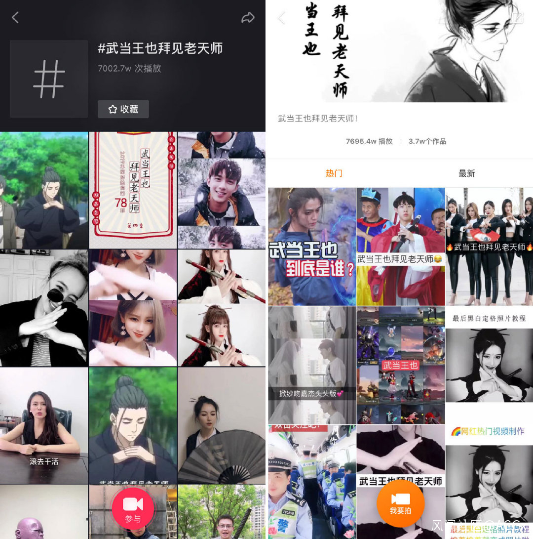 當然對於各類武術愛好者而言,“武當王也,拜見老天師”簡直就是自短視頻問世以來,為數不多專為他們量身定做的模仿秀。無論出身何處,只需短短几秒,你就是全網最in的武當大俠。
