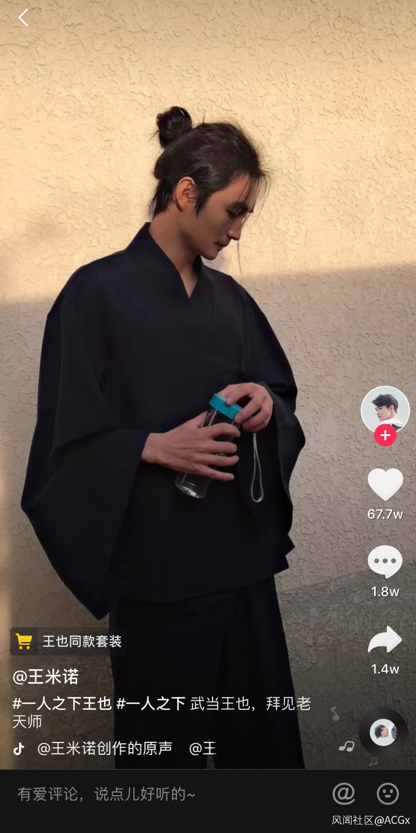 在這條視頻中,@王米諾 COS成了《一人之下》中的王也,並展示了自己的多張COS照,其目的就是為了通過抖音的電商功能,銷售自己身上的同款藏藍色服飾套裝。