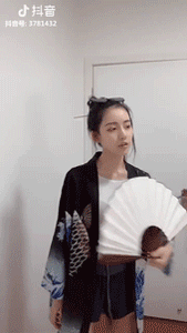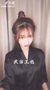 很快,有另外一位名叫@美大寶 的PO主,在4月25日利用這段由@邵貝貝 所發佈的BGM,創作了一條非常具有傳播力的短視頻。只見這位漂亮的小姐姐手持摺扇、身披漢服,在“武當王也,拜見老天師”的伴隨下襬出了帥氣的POSE,還同時將畫面顏色調至黑白,正是當下該模仿秀創作的標準動作。