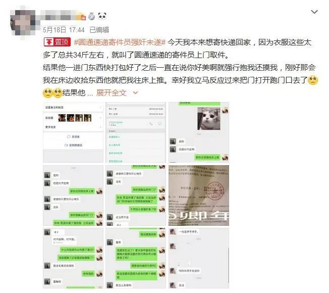 人面禽獸,女網友稱寄快遞時遭圓通快遞員猥褻,嫌疑男子已被抓獲_風聞