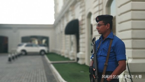 斯里蘭卡首都科倫坡,金斯伯裏酒店停車場檢查站的安保人員。圖/劉馨恬
