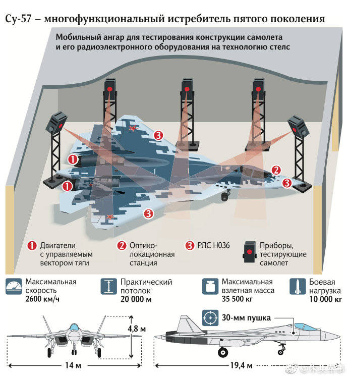 接裝蘇-57的航空團也將獲得全新的地面設備。特別是,配套的移動機庫,您可以在移動機庫中追蹤戰鬥機的隱身能力保持情況,並檢查此前的飛行對戰機的雷達、紅外可探測性造成了多大的影響。地勤人員將檢查機載設備以及蘇-57的雷達吸波塗層是否表現異常。