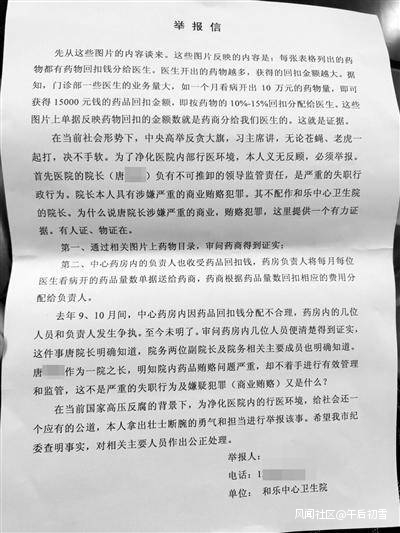 在舉報信中華生還稱,去年9月份,因為利益分配問題,和樂中心衞生院中心藥房內的幾名工作人員,還曾與藥房負責人發生過爭執,“醫生收受藥商回扣,衞生院管理層是知情的,卻視而不見。我之所以舉報這件事,是為了淨化衞生院的行醫環境。”