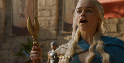 “龍媽”從奴隸主手中買下了所有”無垢者”,並給他們自由,使“無垢者”自願為她而戰。並且,龍媽用瓦雷利亞語(奴隸主以為她聽不懂)對”無垢者”下了指令:殺死自己的主人!