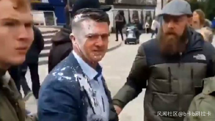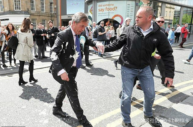 擔心也沒用!英國脱歐黨領袖還是被潑了_風聞