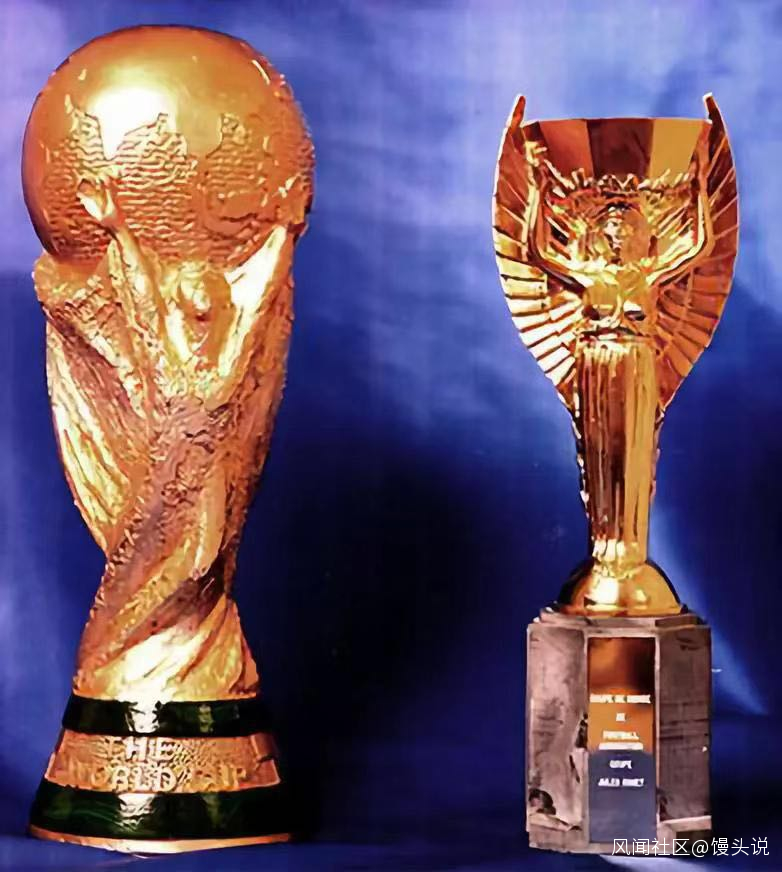 圖右叫“雷米特杯”。是從1930年第一屆到1970年第九屆世界盃的冠軍獎盃,以“雷米特”名字命名,紀念他對世界盃做出的貢獻。當時規定:哪個國家能拿到3次世界冠軍,就能永遠保留“雷米特杯”,結果巴西隊在1970年做到了。所以,1970年之後,世界盃冠軍的獎盃換成了我們現在熟悉的圖左的樣子,叫做“大力神杯”,而且規定:哪怕你獲得100次世界冠軍也不能永遠擁有了。
