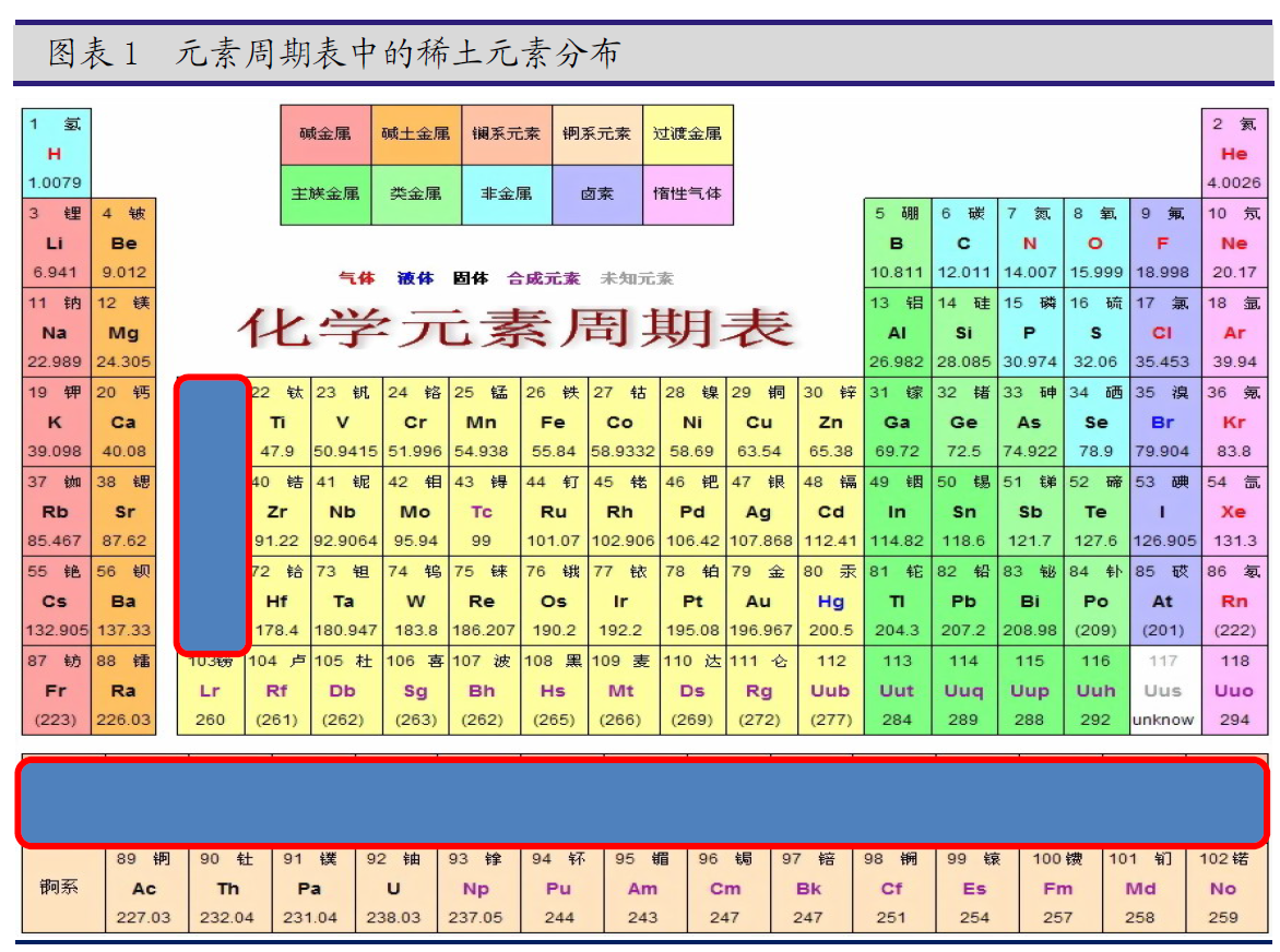 具體來看,稀土元素就是化學元素週期表中鑭系元素,以及與鑭系元素密切相關的兩個元素鈧和釔,總共17中元素的總稱。