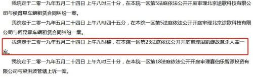 北京一中院發佈的開庭公告 網站截圖