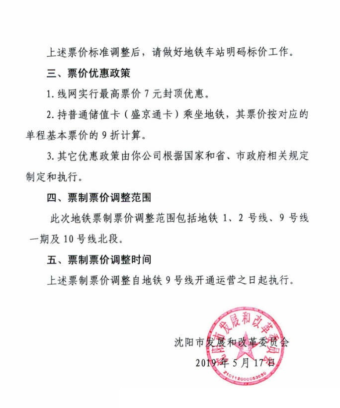 2.持普通儲值卡(盛京通卡)乘坐地鐵,其票價按對應的單程基本票價的9折計算。
