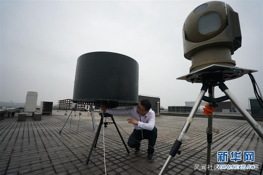 在位於南京的中國電科第14研究所,科研人員在調試“蜘蛛網反無人機系統”(4月23日攝)。 新華社記者季春鵬攝