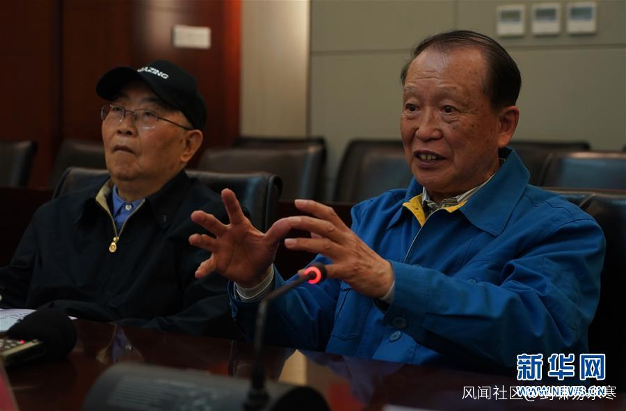 在位於南京的中國電科第14研究所,中國工程院院士、雷達專家賁德(右)在介紹機載火控雷達及其發展趨勢(4月23日攝)。 新華社記者季春鵬攝