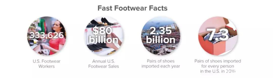 目前,美國鞋產品年消費量在20億雙以上,其中約95%依靠進口,而其中超過一半都來自中國。據FRDA數據,2016年,美國平均每人消費了7.3雙進口鞋。