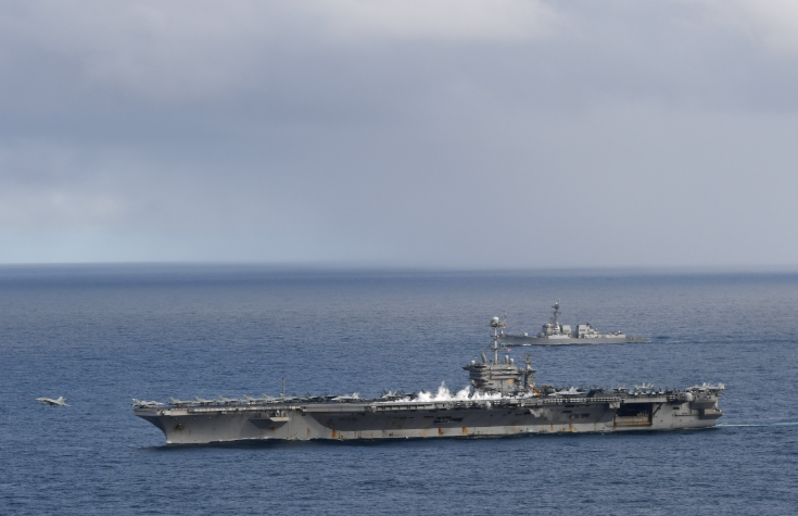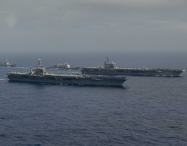 南海仲裁案時期,“里根”號航母和“斯坦尼斯”號航母 圖源:USNI