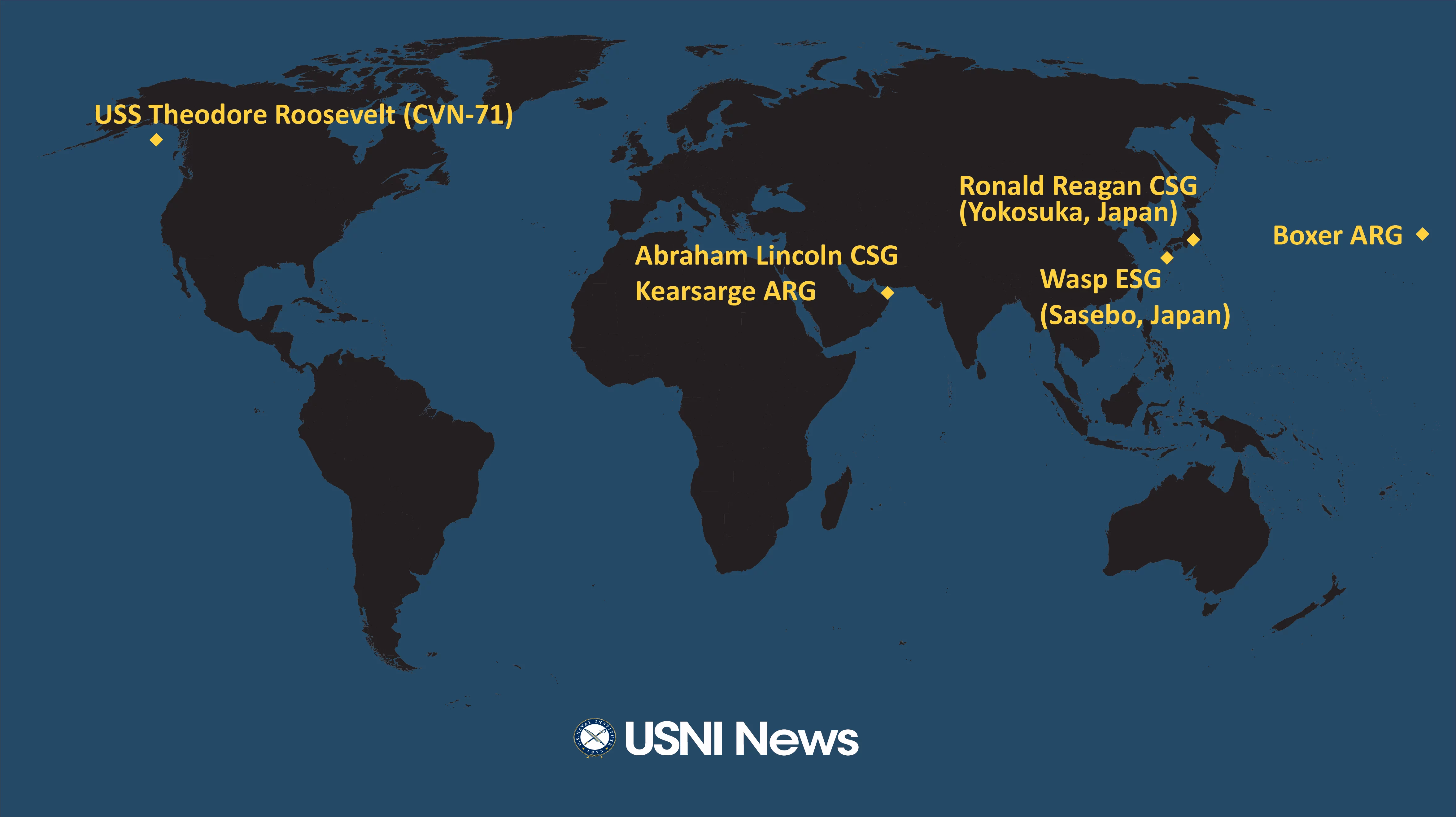 然而由於“里根”號航母,這種依託日本進行“前進部署”的航母也被算為“部署”航母,因此美國實際上服役的航母只有兩艘半——即使在橫須賀拆卸蒸汽彈射器,“里根”號也被強行算是“前進部署航母”。