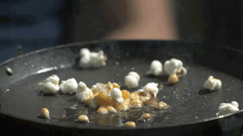 做爆米花只需一個爐灶,一口改造過的高壓鍋,一小袋幹玉米,一點黃油和白糖。鍋燒熱,放入白糖和黃油,不斷攪拌以保證它們能夠均勻地融合。然後倒入玉米粒,耐心攪動。聽!開始是“嗶嗶啵啵”的逐個報信,繼而是大面積的“砰砰”作響,奔走相告。在這些熱烈的爆裂聲中,玉米粒華麗變身,成為香甜的爆米花。