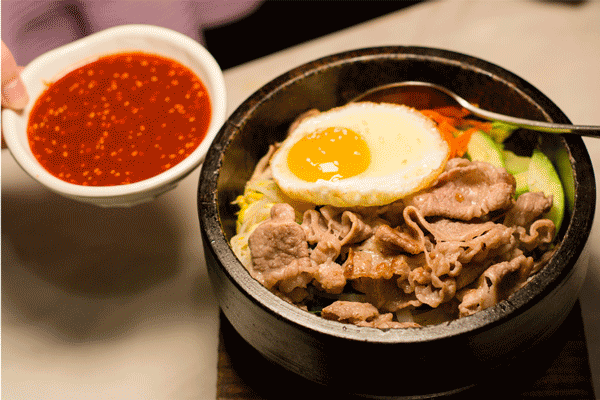 説起石鍋,又不得不提石鍋拌飯。由於熱量自下而上傳遞,接近鍋底的飯總是微焦,形成脆脆的鍋巴。用筷子尖小心地捅破太陽蛋,讓金黃的蛋黃緩緩流出,與暗紅的辣醬和白白的芝麻均勻地包裹住每一顆米粒,讓食物在鍋中持續加熱,幸福地閃耀。