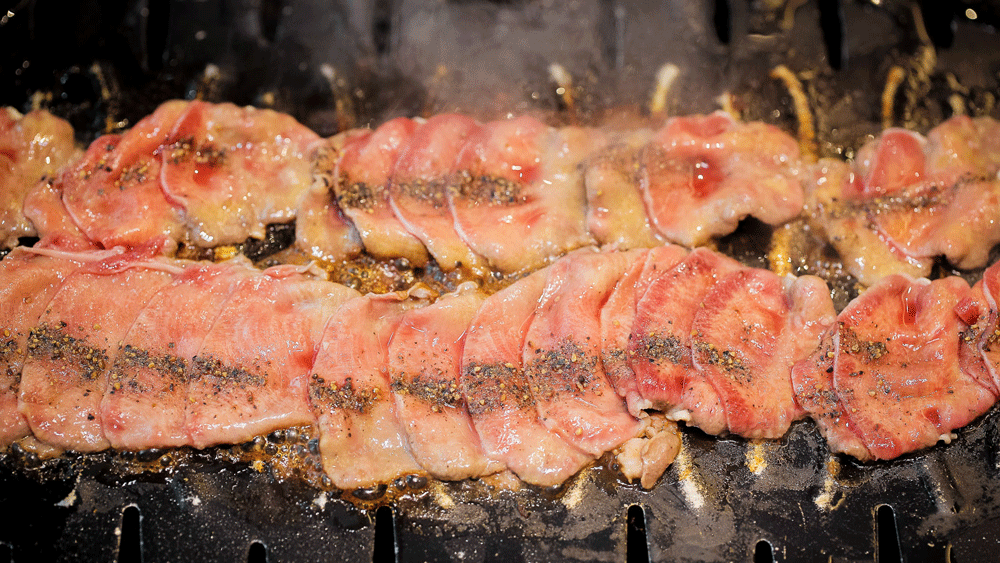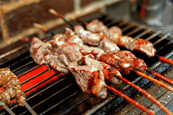 炭火烤肉當屬“滋啦”派的另一大代表。五花肉在炭火的緩慢炙烤下持續升温,肥厚的脂肪和豐盈的汁水被持續的高温急速逼出。隨着油滴的迅速跌落和炭火上留下的灰色印跡,“嗞……嗞……”若是在肉上再刷一層燒肉醬,“嗞啦啦……”