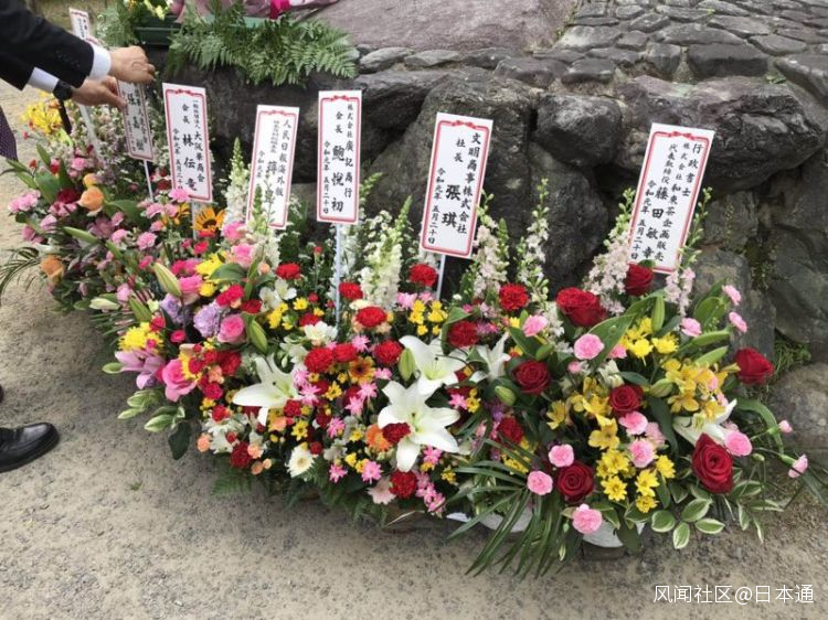 日本京都府知事西脇隆俊、京都市長門川大作、中國駐大阪總領事李天然、《人民日報海外版》日本月刊等為周恩來總理紀念詩碑敬獻花籃。中國駐大阪總領館領事李春在致辭中用“不忘初心、牢記使命、勇於探索、不斷開拓”十六個字描述了周恩來總理的不朽人生,並對中日關係的發展做了展望。