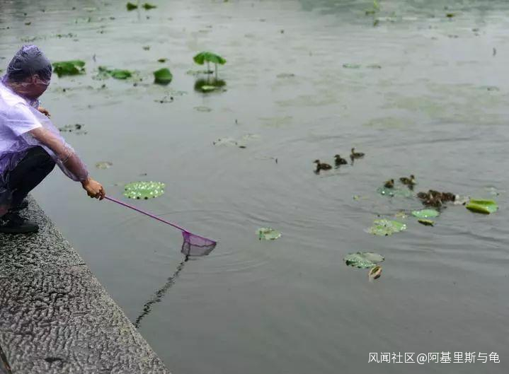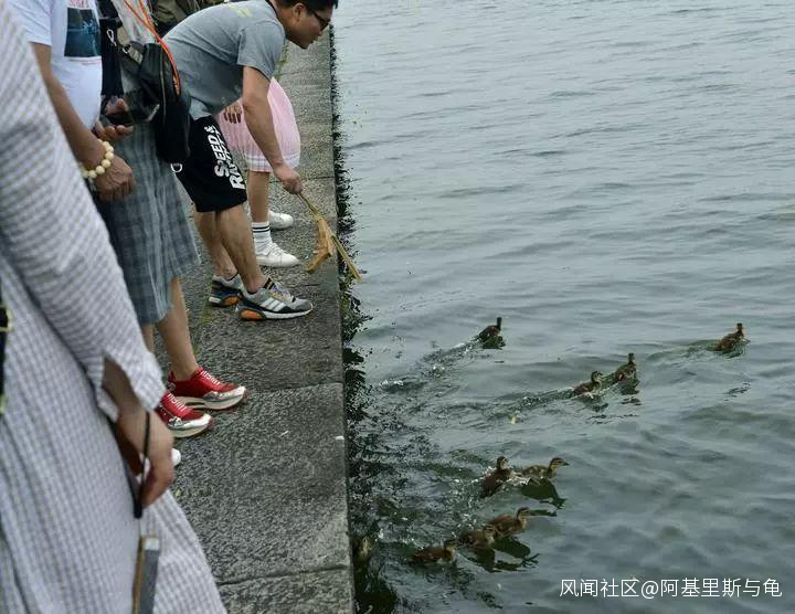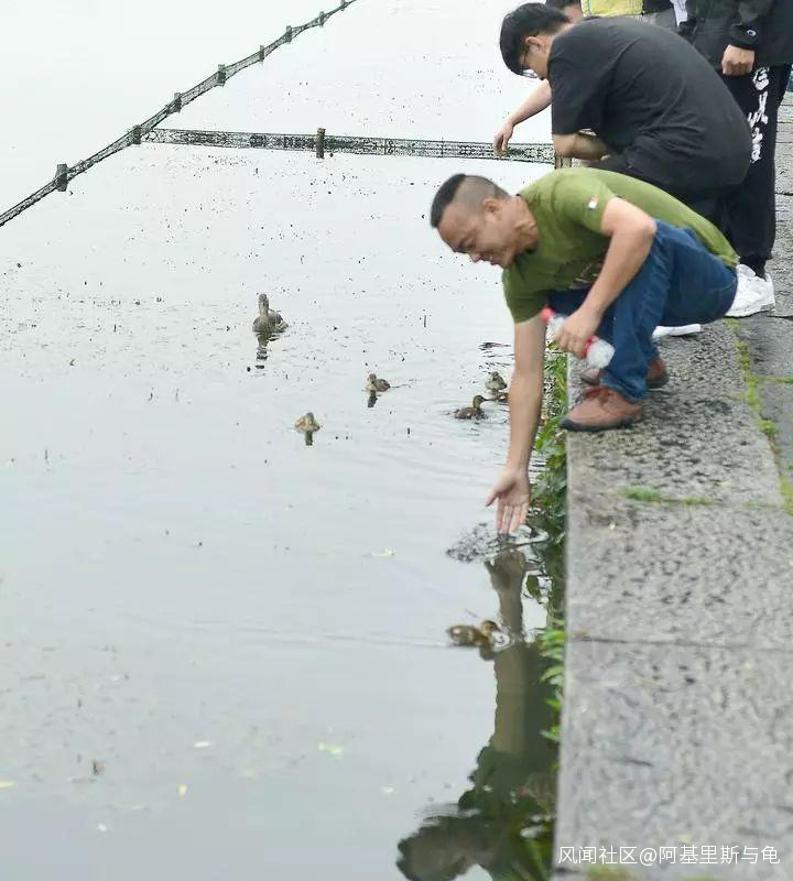 西湖裏小鴛鴦被這個男人一把抓了起來,不幸夭折!志願者拼命制止也沒用_風聞