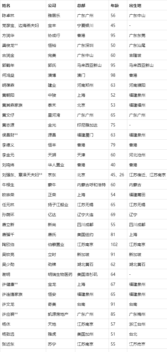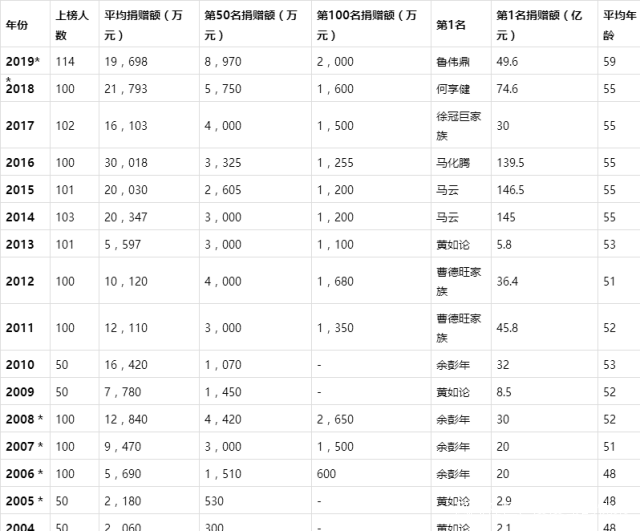 平均年齡59歲,比胡潤百富榜上企業家大4歲,也比去年胡潤慈善榜上慈善家大4歲。