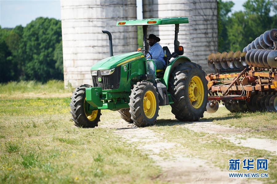 這是5月15日在美國弗吉尼亞州的巴斯克維爾拍攝的豆農約翰·博伊德在自己的農場裏。新華社記者 劉傑 攝