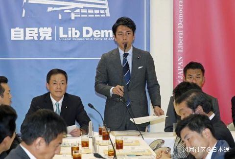 小泉進次郎部會長對2018年10月自民黨厚生勞動部會總結的關於接受外國人的決議內容在法務部會議上進行了説明。左邊是長谷川法務部會長(春名中攝影)