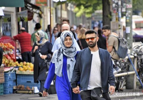 2018年6月,走在德國柏林街上的阿拉伯人男女