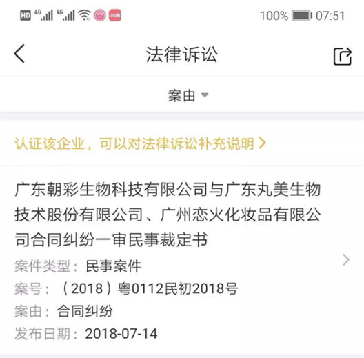 張鳳嬌控股的公司曾對丸美、廣州戀火發起訴訟