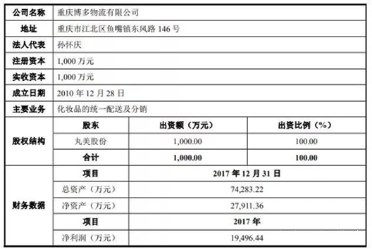 最新的丸美招股説明書顯示,2017年,丸美股份的營業利潤為36,605.48萬元,利潤總額36,094.70萬元,同期其旗下的廣州丸美生物科技有限公司的利潤只有498.39萬元,而重慶博多利潤則高達19,496.44萬元。很明顯,重慶博多在丸美的上市主體中扮演着利潤中心的角色。