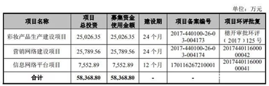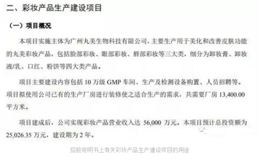 也就是説,在丸美計劃募資的5.8億中,有2.5億元計劃投資於彩妝產品生產建設項目。但這個項目未來可能與戀火無關,儘管其一度聲稱“戀火就是丸美公司的彩妝品牌”,“公司會專注做好這個品牌。”