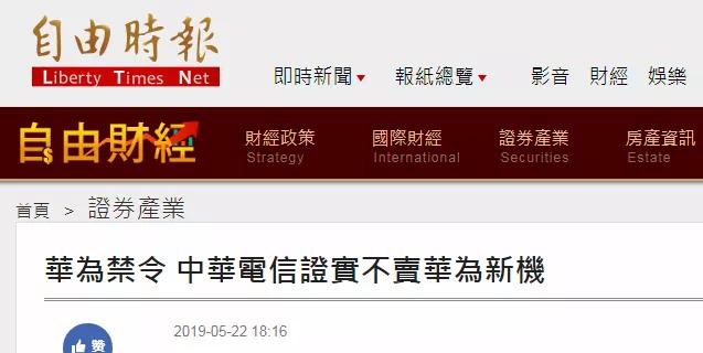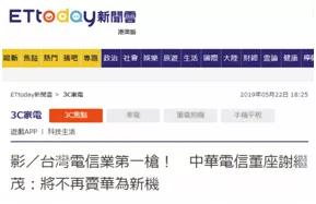 台灣“東森新聞網”“三立新聞網”《自由時報》等多家媒體5月22日報道稱,作為台灣三大電信運營商之一,台灣中華電信計劃不再進購華為手機。