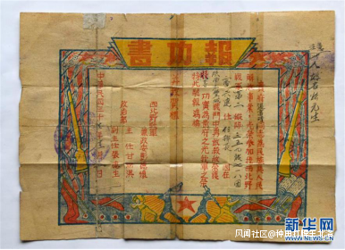 張富清當年的報功書(3月30日翻拍)。新華社記者 程敏 攝