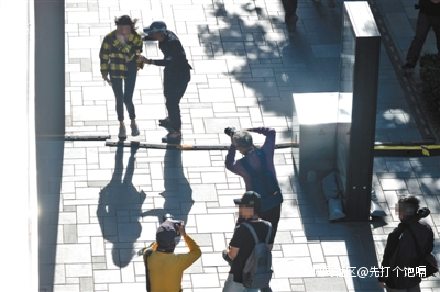 太古裏內也有拍者聚集,看見可拍攝的女孩,他們便蹲在她們正面或側面拍照,或者快速跑到她們會經過的路線拍攝。