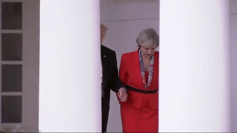 訪問美國時,手牽手和特朗普一起走,還邀請他訪問英國。