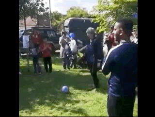在國內和孩子們踢球,不少孩子們圍觀鼓勵她。