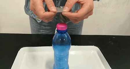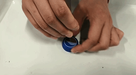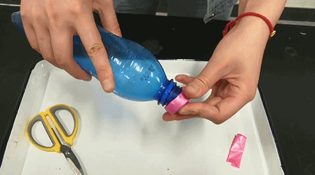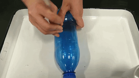 然後繼續堵住小孔捏瓶子