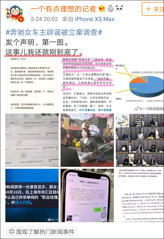5月24日,@一個有點理想的記者還發微博稱這件事他要剛到底。