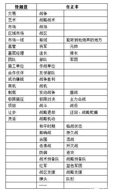 這個詞彙表當然不一定完備,也不一定完全準確,但看過這個詞彙表就該明白,為什麼寫華為的書那麼多,卻沒有一本是真正沾邊和靠譜的。只不過是只要書是寫華為的就有人看。更重要的是,很多任正非詞典裏的詞彙,特朗普可能根本就沒有對應的詞彙去理解。甚至有些詞彙是任正非因不便於表達而從來就沒從他口中聽到過,你只有讀完並且深刻理解任正非看過的書之後,從他的實際行為中才能理解這些詞彙的存在。如果你不精通戰爭和軍事理論,怎麼可能理解任正非所思所想,怎麼可能理解華為究竟想幹什麼?