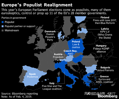 (彭博社:歐洲民族、民粹主義分佈圖)