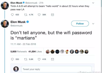 馬斯克在社交媒體上與人對話稱“不要告訴別人,密碼是martians”(圖源網絡)