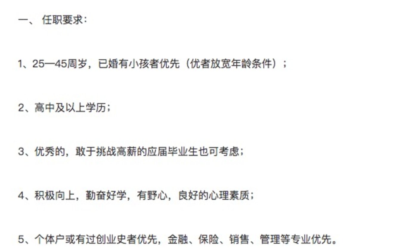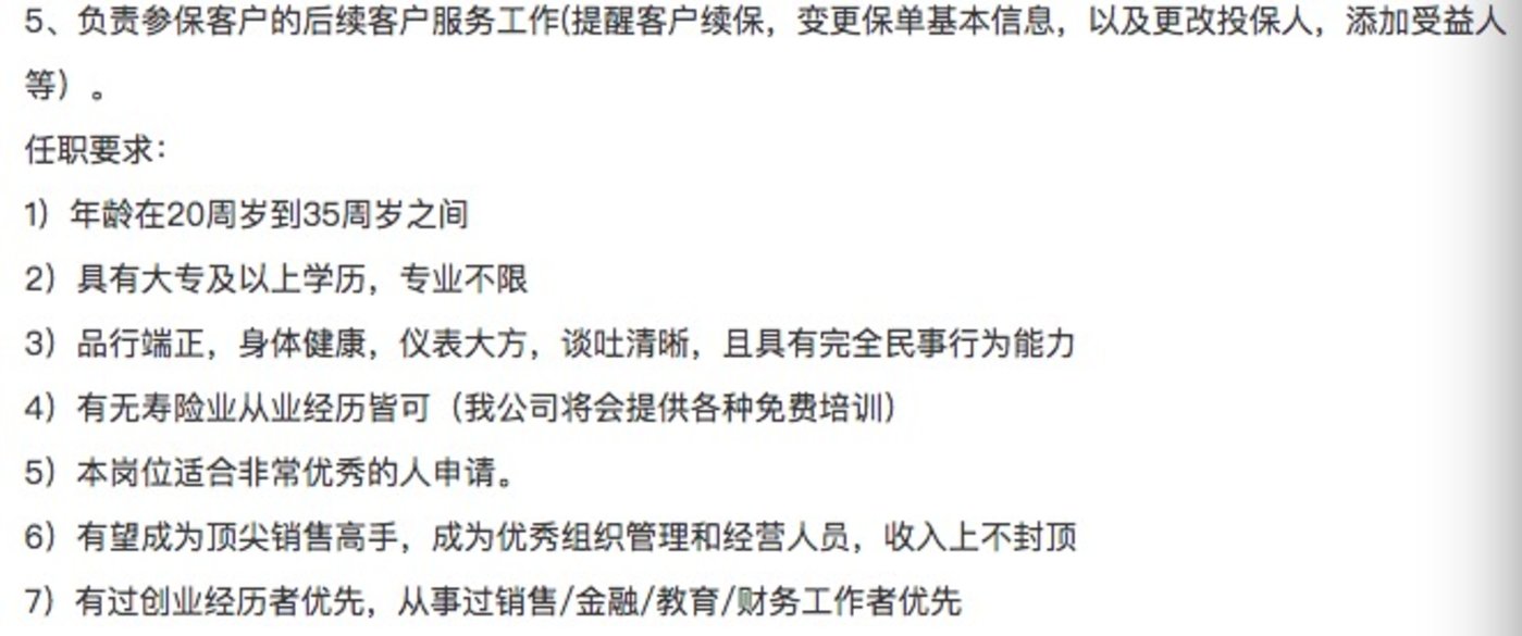 懂懂筆記在求職網站上搜索“保險銷售”、“保險專員”等相關職位,發現有不少知名保險企業的招聘要求中,赫然標註“有過創業經歷者優先”,其中一家知名外資保險機構的四川分公司,更是將創業者的範圍放寬到“個體工商户”。