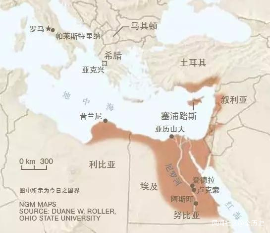 克婁巴特拉七世權勢最大時的王國疆域,公元前34~前31年