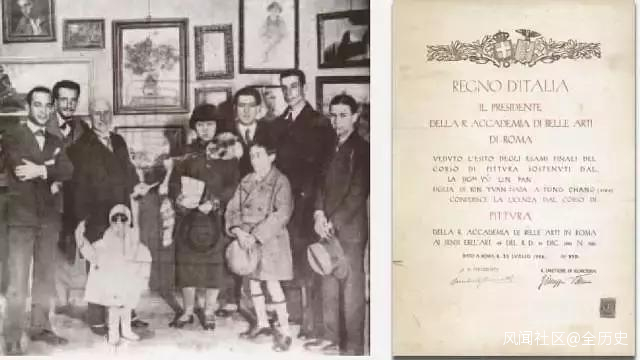 潘玉良在羅馬皇家美術學院的畢業照和畢業證