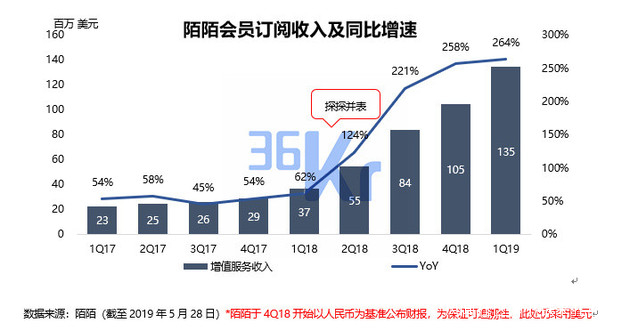 然而,對陌陌如此重要的直播卻開始面臨挑戰。最新公佈的財報顯示,2019年第一季度,陌陌直播業務收入達到4.01億美元,較去年同期增長7.9%,增速明顯下滑,顯現出了直播業務所面臨的壓力**。**