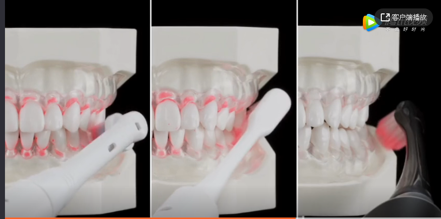 不過他們展示的對牙菌斑和牙漬的清潔效果都是3D CG,這就不太可信了,標準做法是用人牙標本或者活人,繁殖24小時細菌後,再塗上鹼性品紅的染色劑,然後去刷牙,最好用很多標本或很多人取平均值,如此才可信一些。