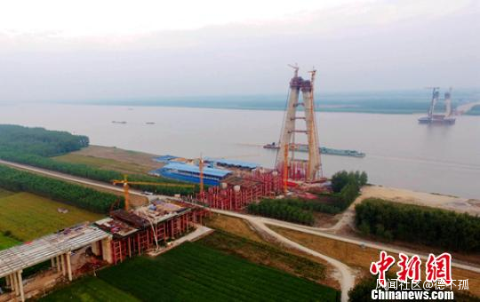 開工建設中的嘉魚長江公路大橋。(資料圖) 四川路橋 攝