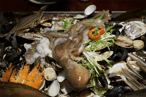 我們現在的食材更加豐富了,我們的口福就更好了,除了生魚片,我們還吃到了蝦、章魚。這個動的小章魚,還有其他的貝類,都可以做成生魚片來吃,因為生魚片能夠最大程度地保持海產品原有的風味和營養。